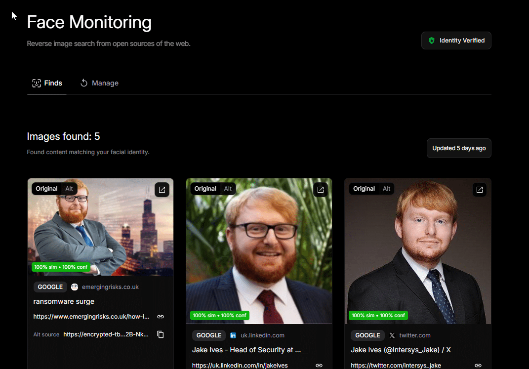 Great for identifying impersonation, fraud, and surfacing old accounts (Like that 2006 Piczo site, or 2007 Myspace profile)